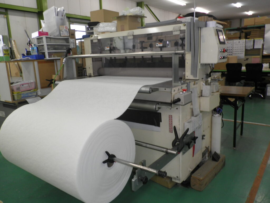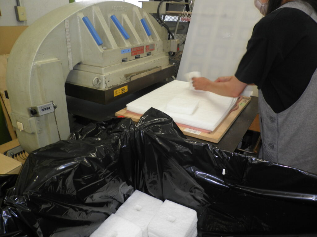 スポンジ裁断中の写真